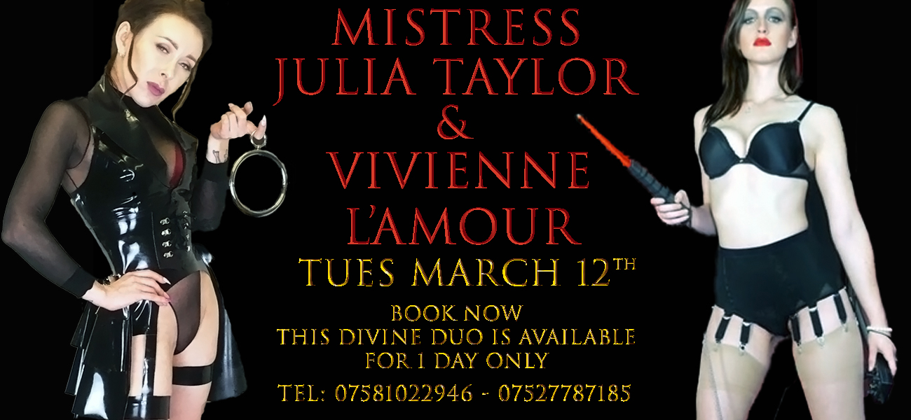 Friday April 28th shall see Double Domme Day Pt.II with Mistress Erika & Mistress Julia Taylor joining forces once again.